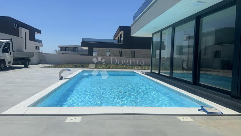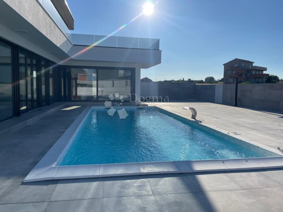 Prodaje se predivna luksuzna vila, potpuno namještena s četiri sobe, svaka s vlastitom kupaonicom, bazenom te prostranom okućnicom od 780 m2 u mirnom mjestu Zemunik Gornji, udaljenom 12 km od Zadra i mora. Ova lokacija idealna je za opuštanje i uživanje u privatnosti.