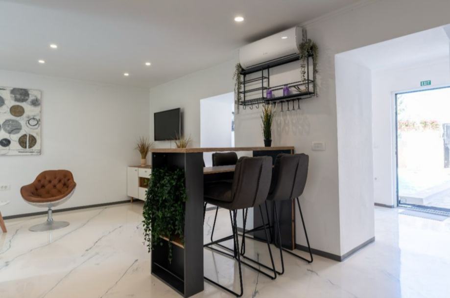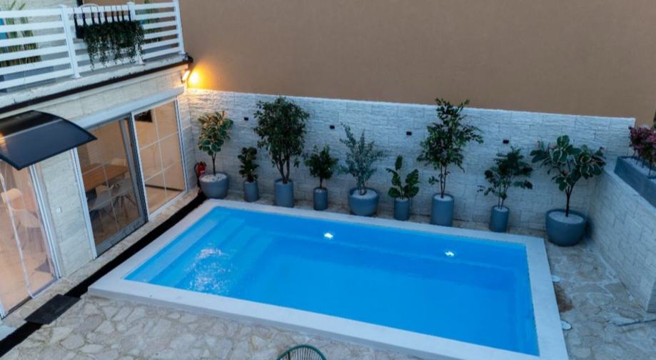 Na prodaju kuća za odmor u Valkarinu. Površina nekretnine je 150m2 , uz balkon veličine 20m2, ograđeno dvorište cca. 60m2 , uz bazen dimenzija 6x3m. Prizemlje je moderno namješteno i opremljeno, sa podom od epoxy smole. U sklopu dnevnog boravka je kuhinja i blagovaonski stol za 8 osoba. Iz blagovaonice se pruža pogled na bazen, koji se pretvara u otvoreni dio kuće, po potrebi. U prizemlju se nalazi još jedna kupaona sa WC-om i prostorija za pranje veša.Na 1. katu se nalaze 2 spavaonice i jedna kupaonica sa WC-om.Iz svake sobe se izlazi na veliki balkon sa pogledom na bazen. Na 2. katu je galerija od cca 40m2, sa dva bračna kreveta, dimenzija 160x200cm. Kuća ima 3 zvjezdice i iznajmljena je 100 noći u sezoni. Kategorizirana je za boravak 8 osoba. Opremljena je u potpunosti, sav namještaj je nov, tako da se bez ikakve dodatne investicije može useliti ili nastaviti sa iznajmljivanjem.