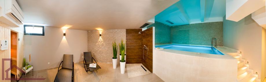 - Podrum: wellness zona s grijanim unutarnjim bazenom, sauna, soba za vježbanje, prostorija za zabavu, praonica rublja