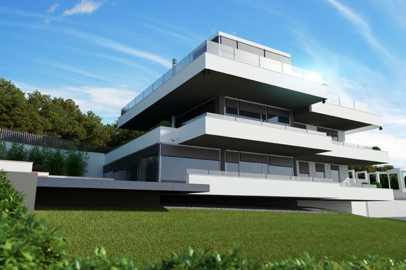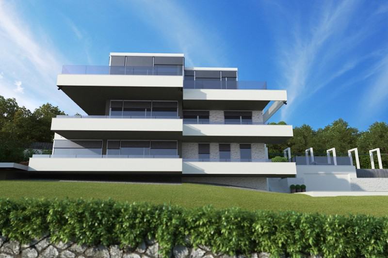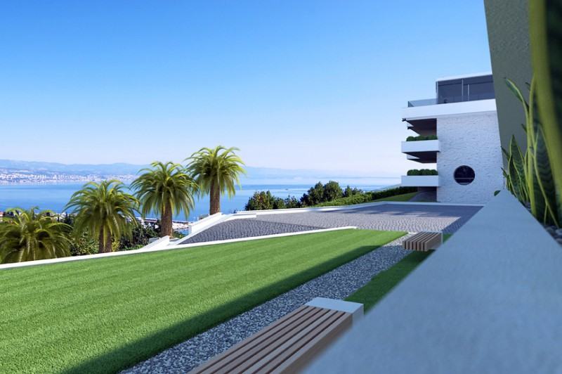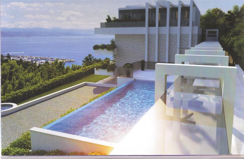 Villa u Opatiji udaljena 100 m od mora, veličine 603 m2, od toga garaža 54 m2, prizemlje 229 m2, kat 176 m2 i potkrovlje 143 m2.