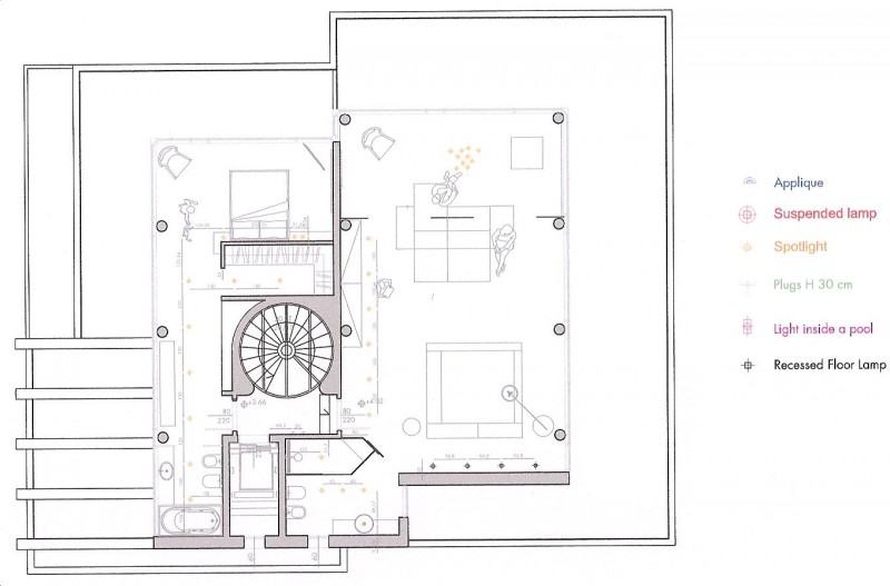 U potkrovlju se nalazi stepenište, spavaća soba s kupaonom, 2 terasa, apartman za goste, kupaona i spremište.