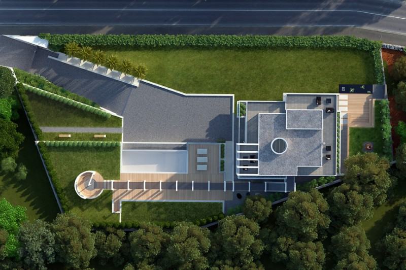 Parcela je veličine 2350 m2, sa velikim bazenom veličine 65 m2.