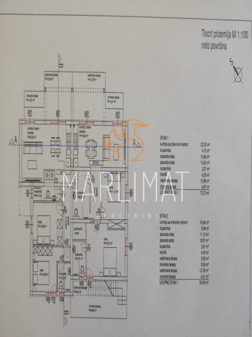 Ukupna neto površina stana iznosi 72.73m2