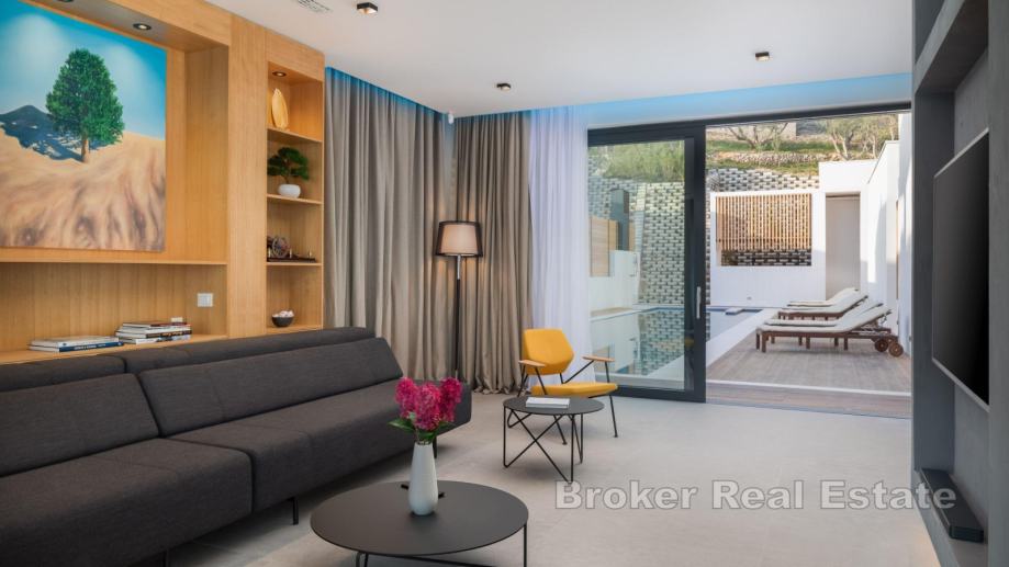 Moderan dizajn interijera, očaravajući pogled na more i otoke, luksuzni sadržaji, te blizina slikovitih plaža nadaleko poznate omiške rivijere samo su neki od razloga zbog kojih vila predstavlja jedinstvenu investicijsku priliku za investitore koji su još uvijek u potrazi za svojim mediteranskim utočištem koje nudi prvoklasnu udobnost boravka tijekom cijele godine i ima veliki turistički potencijal.