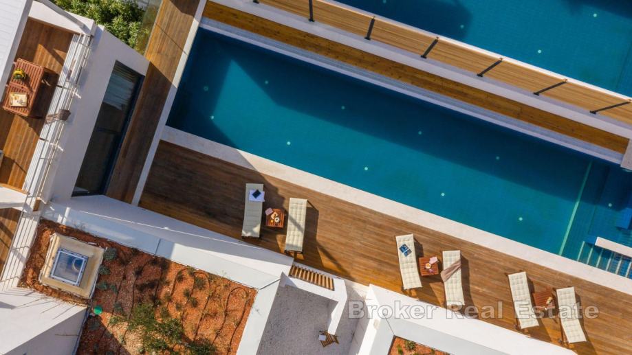 Vila luksuznog uređenja s otvorenim pogledom na more, izgrađena na zemljištu površine 861 m2, a ukupne stambene površine 298 m2. S obzirom na impresivnu lokaciju i na vrlo oskudan promet oko vile, privatnost je zajamčena.