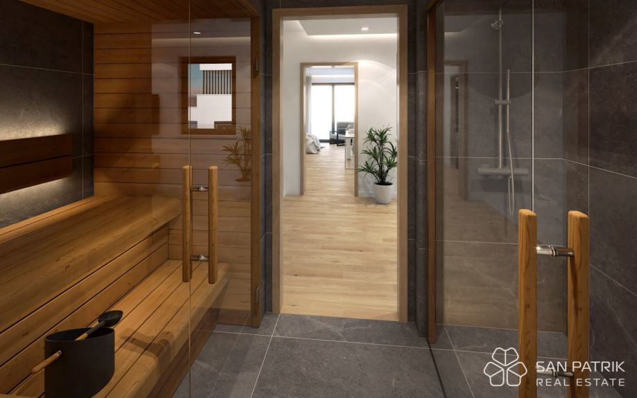 Poseban naglasak stavljen je na opuštanje i boravak u svim godišnjim dobima. Vila nudi grijani infinity bazen površine 30 m2, sunčalište s pogledom na more, jacuzzi i kombiniranu saunu (finsku i infracrvenu), kao i vlastitu fitness zonu. Kamin u dnevnom boravku dodatno pridonosi atmosferi topline i elegancije. Tehnička opremljenost omogućuje i poslovnu upotrebu, uz stabilan internet, printer, pametnu ploču i mirnu radnu okolinu.