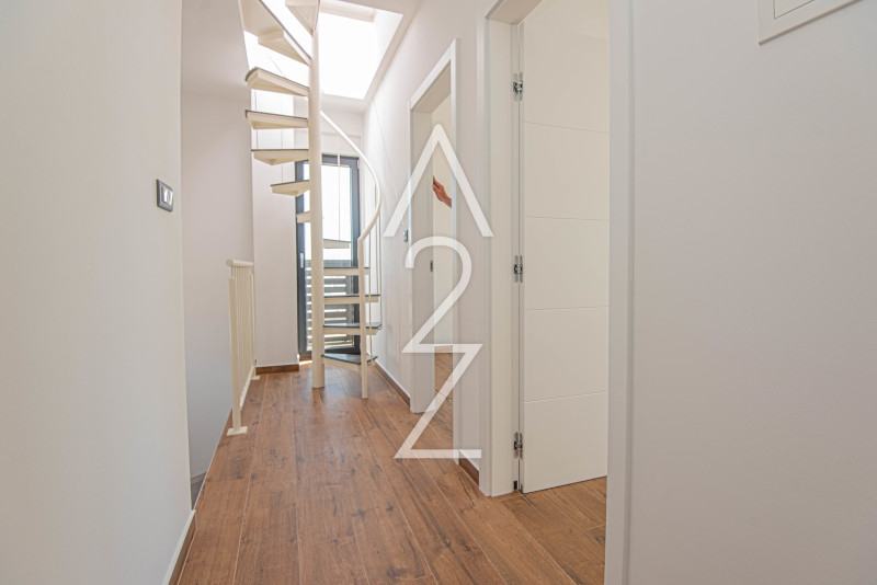 Idealna je za obitelj zbog 3 spavaće sobe sa 2 kupaonice koje se nalaze na 1. katu, dok je u prizemlju dnevni boravak, kuhinja i blagovaonica otvorenog tlocrta, s time da je kuhinja kompletno opremljena sa kuhinjskim otokom! Uz to, u prizemlju se nalazi i wc te spremište u kojem je smješten spremnik od 300l za toplu vodu putem solarnog kolektora. Na prostor zajedničkog boravka u prizemlju se nastavlja natkrivena terasa sa vanjskim tušem sa spremnikom tople vode na solarno grijanje, tenda na električni pogon, opločano dvorište, travnata površina i bazen od 29,19 m2. Ukupna neto kvadratura vile je 112,62 m2, s time da se još na 2. katu nalazi i dodatnih 52m2 sunčališta s otvorenim pogledom na more.