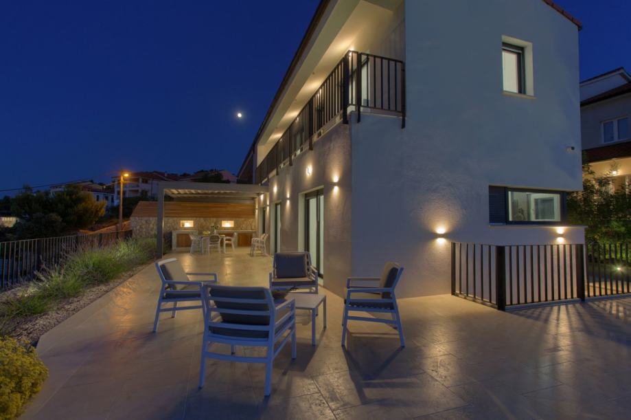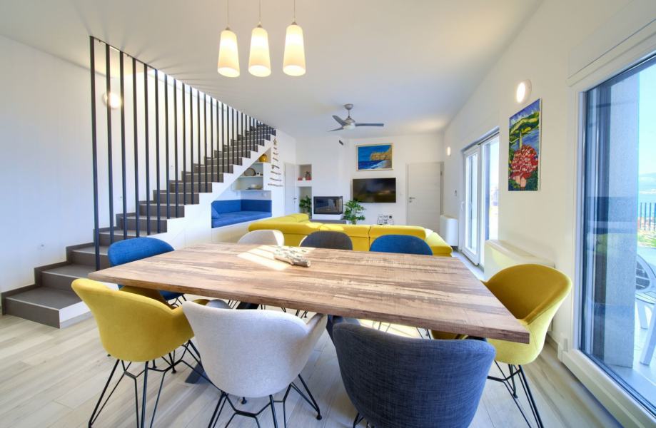 Ova izuzetna nekretnina smještena je na mirnoj lokaciji, svega 400 metara od mora i svih potrebnih sadržaja, čineći je savršenim izborom za one koji traže miran i luksuzan životni prostor.