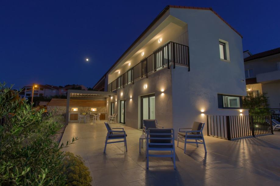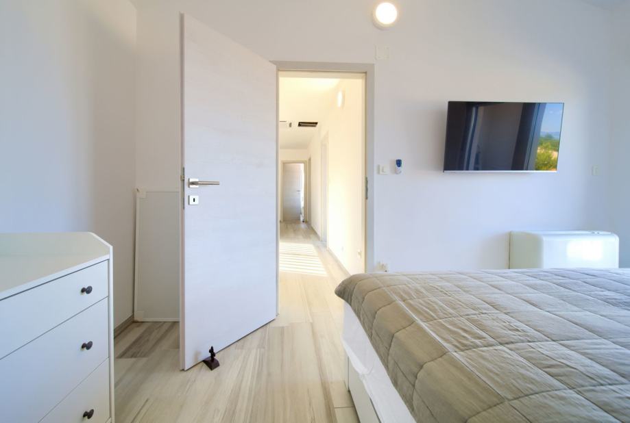 Na prodaju je nova urbana dvojna villa s prostranom okućnicom, bazenom i predivnim pogledom na more. Ova elegantna nekretnina zauzima stambenu površinu od 126,78 m2 i nudi savršen spoj luksuza i udobnosti. Villa se sastoji od podruma u kojem se nalazi strojarnica, kuhinja, toalet i konoba, idealna za opuštanje i uživanje u intimnom ambijentu. Prizemlje obuhvaća ulazni prostor, prostrani dnevni boravak, kuhinju, blagovaonu s izlazom na natkrivenu terasu te grijani bazen okružen sunčalištem. Tu je i jedna spavaća soba s vlastitom kupaonicom te dodatni toalet. Na katu su smještene tri prostrane spavaće sobe, dvije moderne kupaonice i terasa koja pruža nevjerojatan, otvoreni pogled na more. Lijepo uređena okućnica oplemenjena mediteranskim biljem sadrži natkrivenu terasu sa ljetnom kuhinjom, idealnu za druženja na otvorenom, te parking za dva vozila.