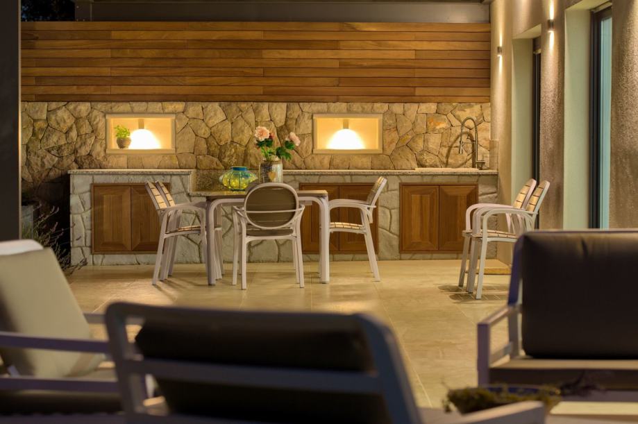 Villa je opremljena vrhunskim materijalima i modernom tehnologijom, uključujući klimatizaciju u svim prostorijama, podno grijanje na dizalicu topline, kamin na kruta goriva i vrhunsku keramiku. ALU stolarija osigurava dugotrajnost i energetski učinkovit dom, dok kvalitetan namještaj i oprema stvaraju moderan i ugodan interijer.