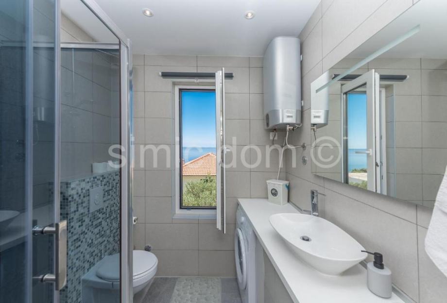 Posredujemo u prodaji prekrasne vile s dva odvojena stana, smještenoj na vrlo mirnoj lokaciji u Makarskoj. Površina vile je 190m2 te se prostire etažama prizemlja i prvog kata. Na svakoj je etaži po jedan stan s dvije spavaće sobe, kupaonicom, kuhinjom i dnevnim boravkom. Stan na katu, također, ima i lijep balkon s kojeg se dojmljivo vidi more, otoci i sama Makarska. Iz donjeg se stana, pak, izlazi na veliku terasu s bazenom i sunčalištem, a vila ima i parkirni prostor. Nekretnina se prodaje u potpunosti opremljena i namještena biranom opremom (vrhunski kućanski aparati) i vrlo atraktivnim, funkcionalnim namještajem te je opći dojam kako je riječ o modernoj, luksuzno uređenoj nekretnini. Svi su sadržaji unutar nekoliko minuta vožnje te je vila idealan izbor što za posao turističkog najma, što za cjelogodišnji život. Vlasništvo uredno.