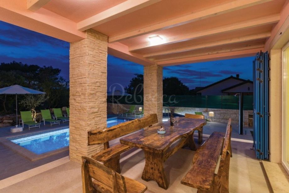 Vanjski dio vile je vrlo lijepo uređen te pored bazena i jacuzzia ima