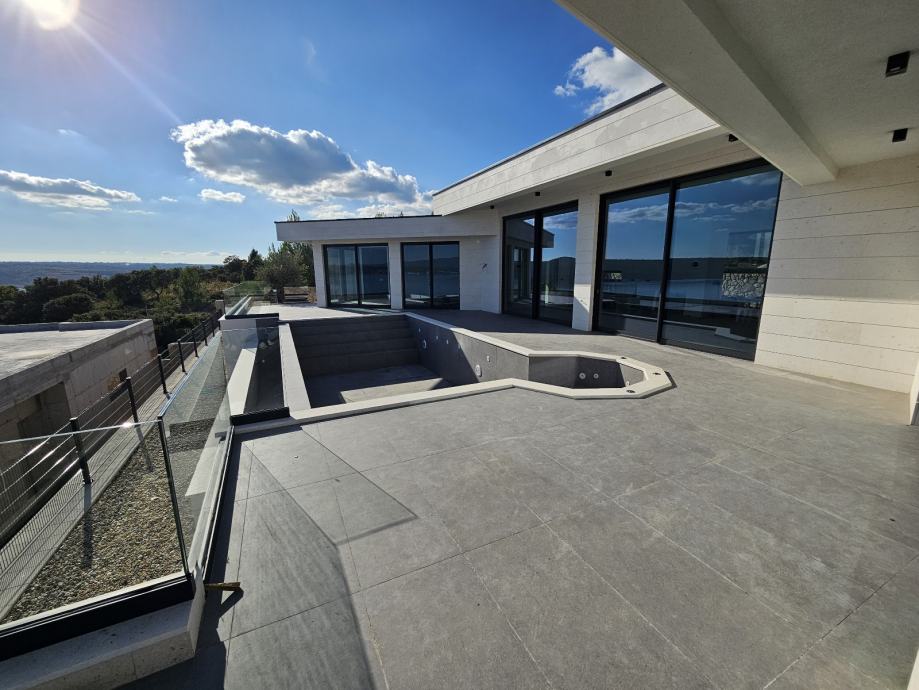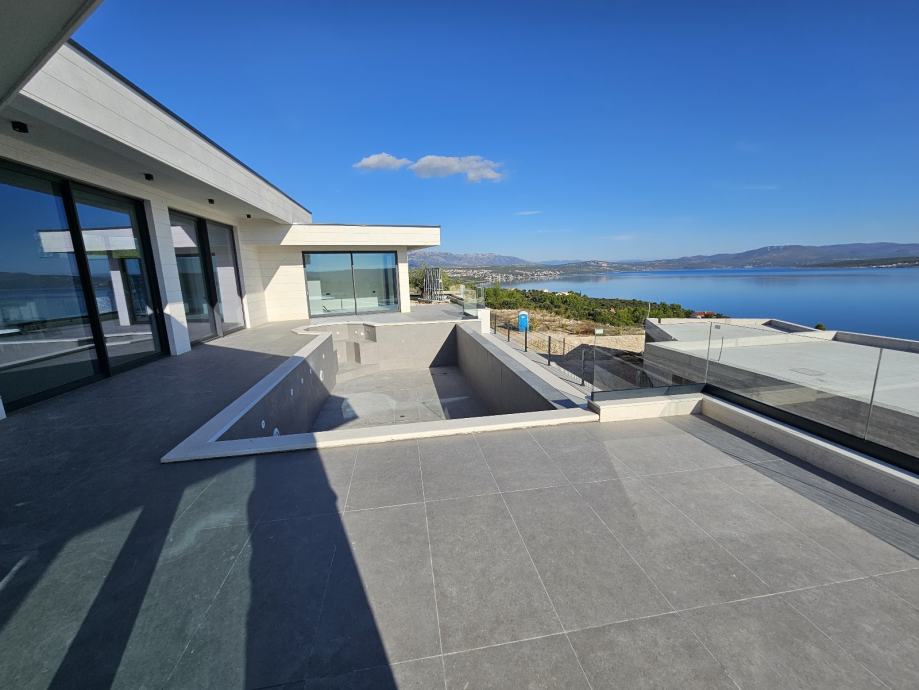 Ova ekskluzivna vila oduševljava modernom arhitekturom, visokokvalitetnim materijalima i spektakularnim grijanim infinity bazenom. Okružena kamenim zidom, pruža maksimalnu privatnost i vrhunski komfor. Svaka soba ima vlastitu kupaonicu, što ovu nekretninu čini idealnom za obitelji i zahtjevne kupce.