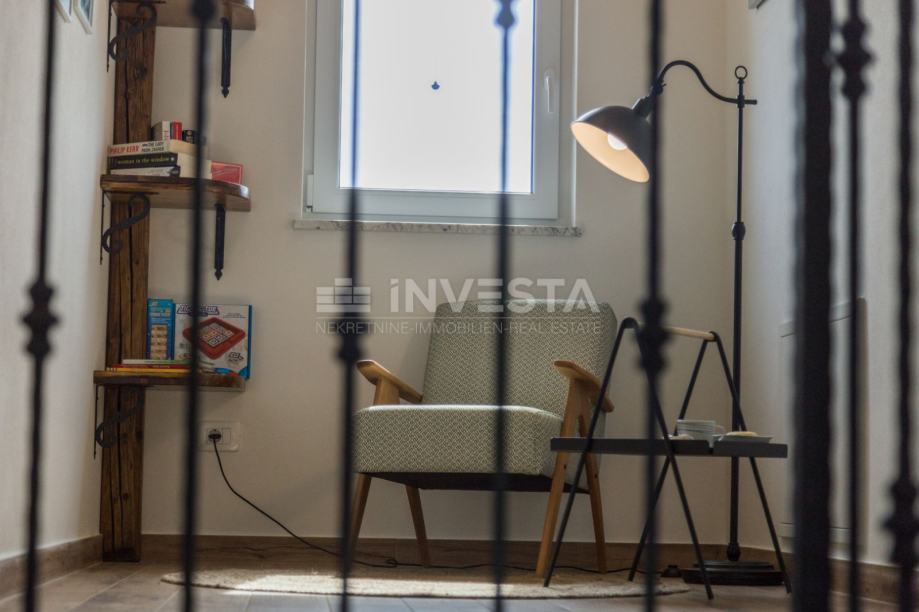 Unutarnje stubište vodi na prvi kat gdje se nalazi prostrani hodnik koji može služiti kao kutak za čitanje ili opuštanje.