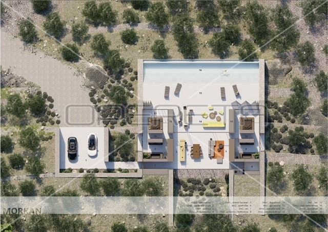 Smještena na prostranoj parceli od 31.724 m2, ova vila obuhvaća tlocrtnu površinu od 300 m2 i ukupnu bruto površinu od 212 m2.