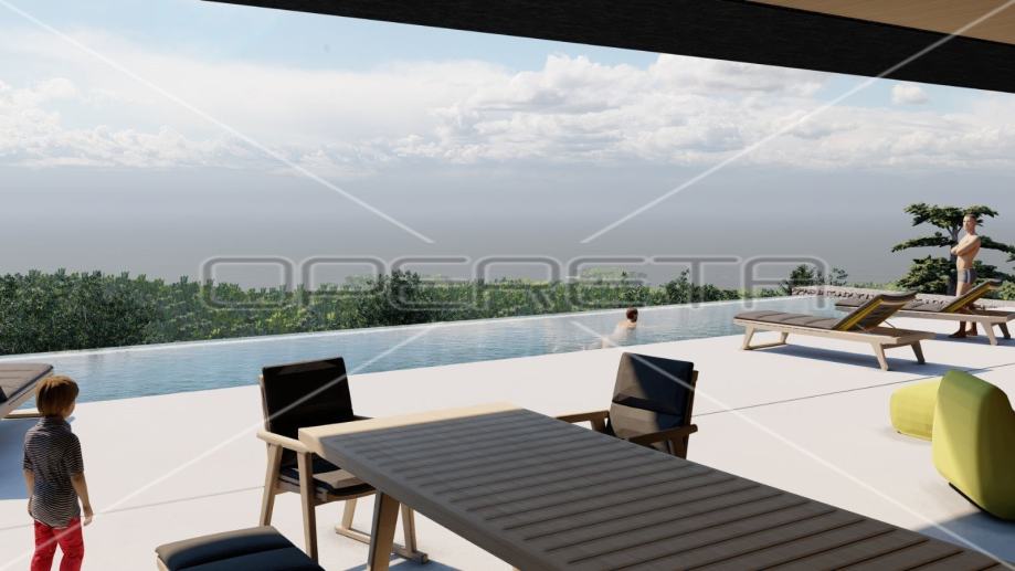 Arhitektura vile je pažljivo osmišljena da pruži maksimalan komfor i funkcionalnost. Planirani prostor uključuje elegantan ulazni trijem koji vodi do prostranog dnevnog boravka, savršeno integriranog s kuhinjom i blagovaonicom, formirajući srce doma. Otvoreni koncept dnevnog boravka omogućava izlaz na veliku natkrivenu terasu, idealnu za opuštanje ili zabavu uz nezaboravan pogled. Dodatne karakteristike uključuju 2 luksuzne spavaće sobe s en-suite kupaonicama i garderobama, sunčalište i vanjski bazen, kao i 3 parkirna mjesta, pružajući osjećaj ekskluzivnosti i posvećenosti detaljima.