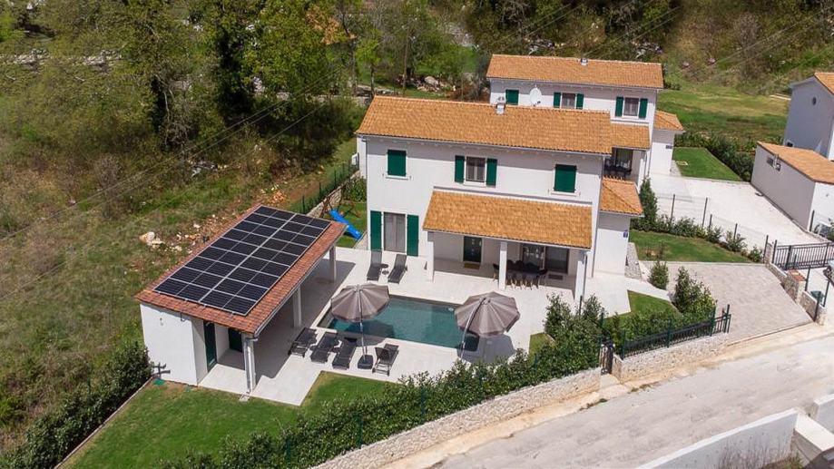 Kuća ima ugrađene solarne panele za samostalni izvor energije.