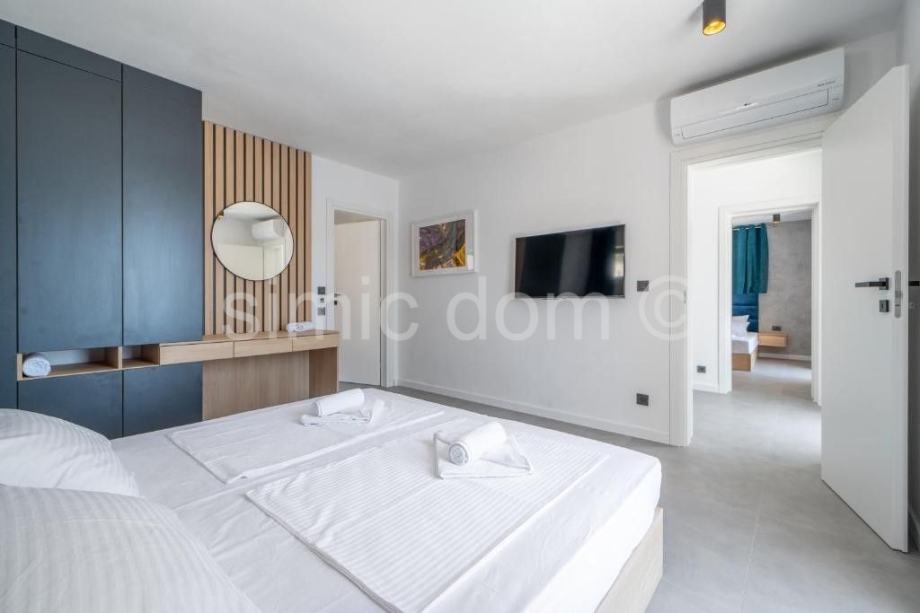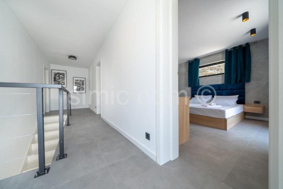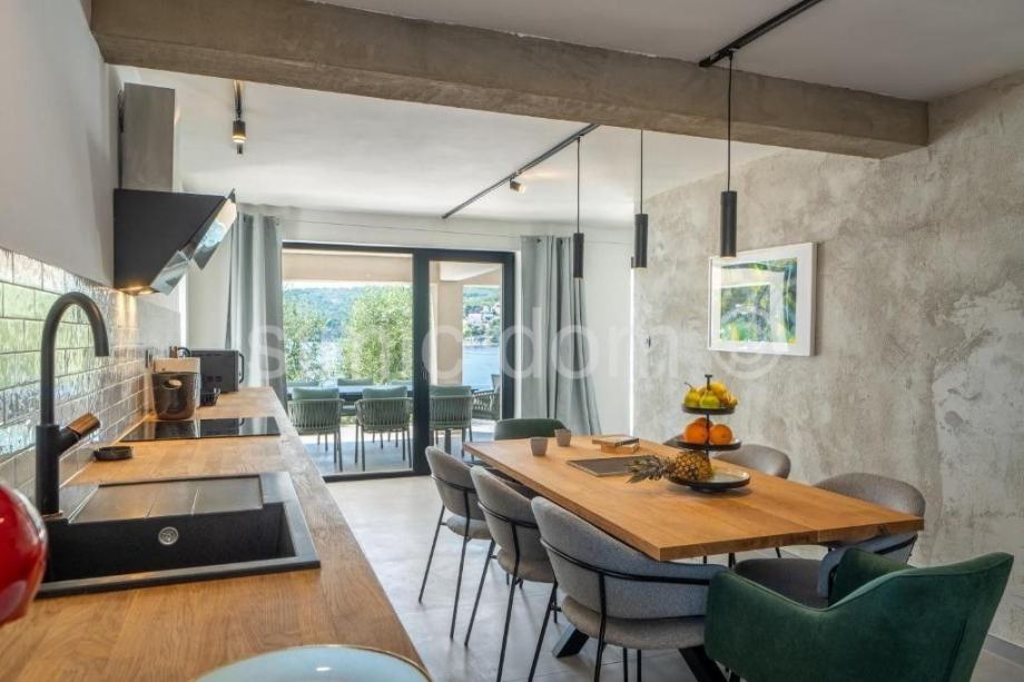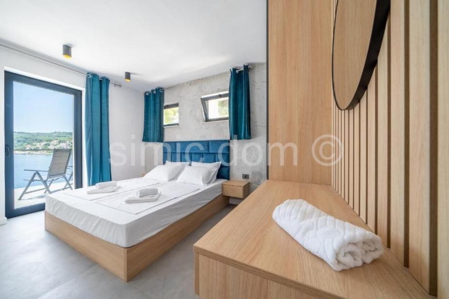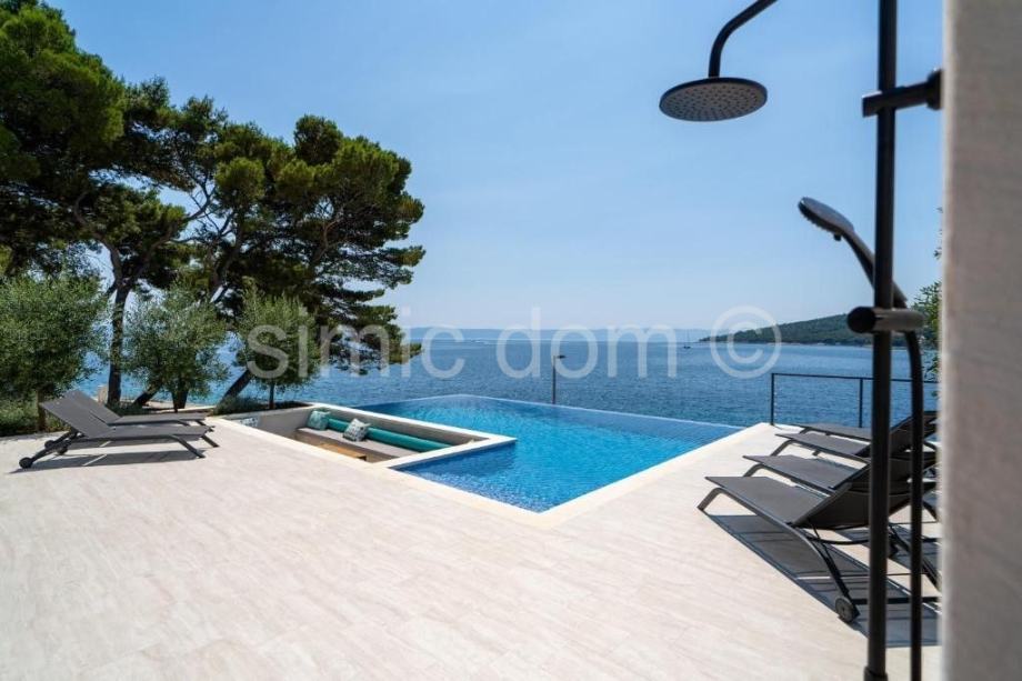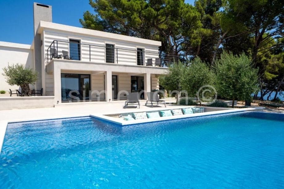 Na prodaju je očaravajuća moderna vila na otoku Braču, smještena neposredno do prekrasnog mora u prvome redu. Nekretnina ima površinu 314 m2 i smještena je u prekrasnome prirodnom okruženju, okružena umirujućim, tipično mediteranskim raslinjem. Kuća se sastoji od dvije etaže. Prizemlje se sastoji od kuhinje s blagovaonicom, dnevnog boravka s kaminom, jedne kupaonice te tri ostavne prostorije. Unutarnjim stepeništem dolazi se na prvi kat vile koji sadrži ukupno 5 spavaćih soba, četiri kupaonice, dnevni dio te spektakularnu terasu koja nudi panoramski pogled na more. Prostrana parcela površine 1140 m2 uključuje infinity bazen s prostranim sunčalištem i lounge dijelom te 4 parking mjesta. Nekretnina uključuje i vez za brod.