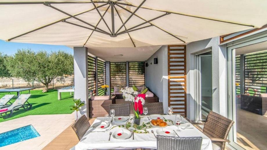 Vila je izgrađena 2011. godine i redovito je održavana. Posjeduje energetsku oznaku A+, podno grijanje u cijeloj kući putem dizalice topline te solarne panele. Prodaje se potpuno namještena i opremljena, spremna za useljenje.