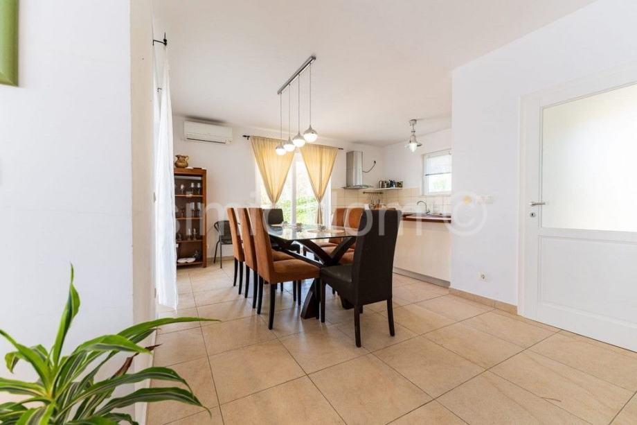Posredujemo u prodaji prekrasne vile koja je smještena odmah uz more u jednoj od najljepših uvala južne Korčule. Površina parcele je 811m2, dok sama vila ima površinu od 250m2. Proteže se etažama suterena, prizemlja i prvog kata. U suterenu se nalaze dvije prostorije čija se namjena može odrediti za teretanu, saunu ili neki sličan sadržaj. Tu je i vinski podrum, a upravo se iz tog suterena izlazi na prekrasnu terasu s jacuzzijem. Suteren je vanjskim stepenicama povezan s etažom prizemlja, a u kojem se nalazi kupaonica, spavaća soba, veliki dnevni boravak s kuhinjom i blagovaonicom te još jedna terasa s kaminom i vanjskim prostorom za objedovanje. Na katu se nalaze tri spavaće sobe i dvije kupaonice. Terase i balkoni nude uistinu jedinstven pogled na more i cijelu uvalu. Vila je iznimno kvalitetno sagrađena, redovito održavana te namještena i opremljena vrhunskim namještajem. Posebna je prednost uređena okućnica prepuna mediteranskog raslinja te jako mirna lokacija koja nudi privatnost. Visok stupanj uređenosti vile, prostranost i lokacija tik do mora čine ovu vilu vrhunskom prilikom. Vlasništvo uredno.