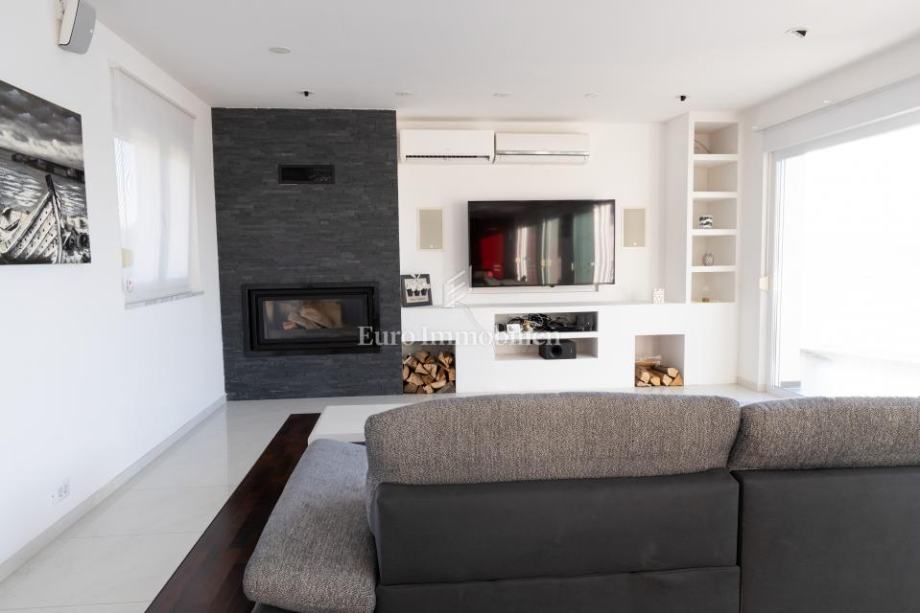 Kuća je potpuno opremljena visokokvalitetnim namještajem i uređajima. Zahvaljujući kaminu, podnom grijanju i klima uređaju za grijanje i hlađenje, pogodna je za cjelogodišnje stanovanje. Klima uređajem može se upravljati na daljinu putem pametnog telefona. Kuća je opremljena i video nadzorom kojim se također može upravljati putem pametnog telefona.