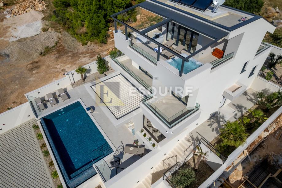 Smeštena na prostranom zemljištu od 640 m2, s ukupno 350m2 stambene površine, ova vila je dizajnirana na četiri etaže – podrum, prizemlje, kat i potkrovlje. Svaki kutak ove izvanredne nekretnine pažljivo je isplaniran, s svaki detalj dizajna pažljivo osmišljen i ukomponiran kako bi pružio vrhunski ugođaj.