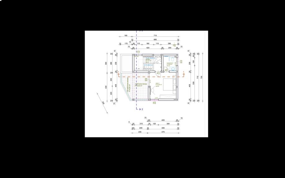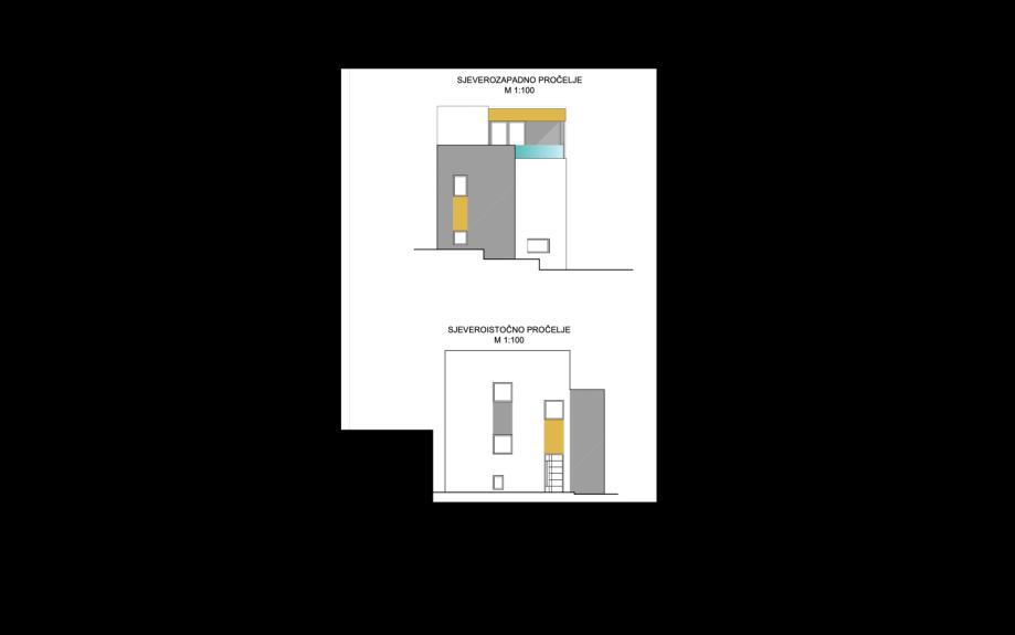 Etaža 2. kata sastojati će se od: stubišta, treće spavaće sobe sa svojom kupaonicom i izlazom na natriveni dio i nenatkriveni dio terase s koje se također pruža pogled na more.