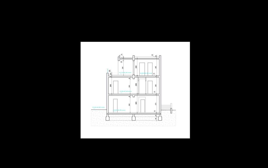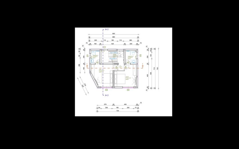 The 1st floor will consist of: a staircase, an entrance hall, two bedrooms with sea view, each with its own bathroom.