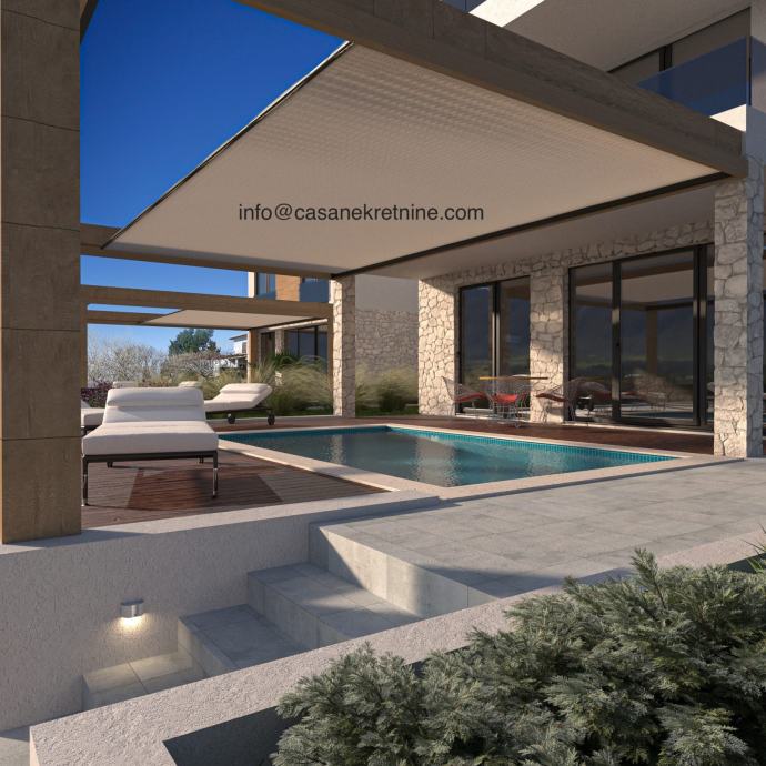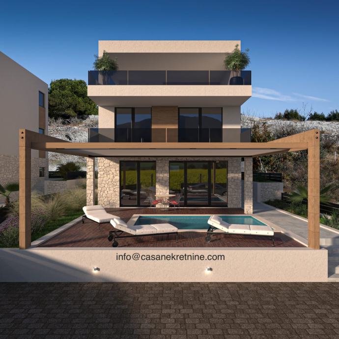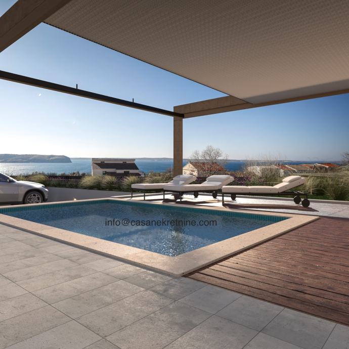 VILA: Rtina, MODERNA MANJA VILA S BAZENOM I POGLEDOM NA MORE, 150.00m2 (prodaja)