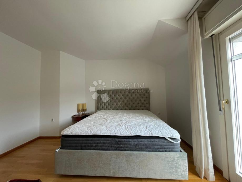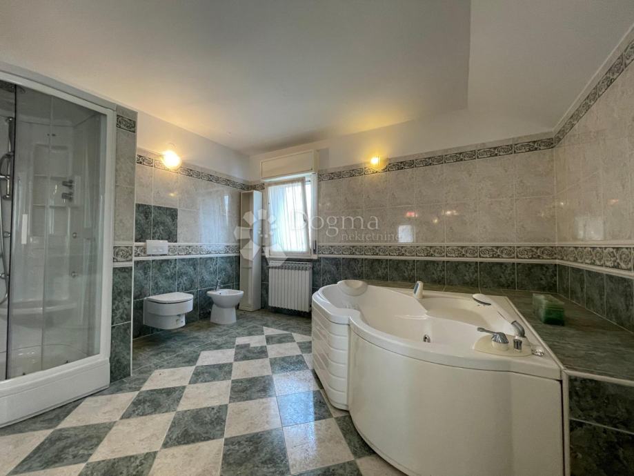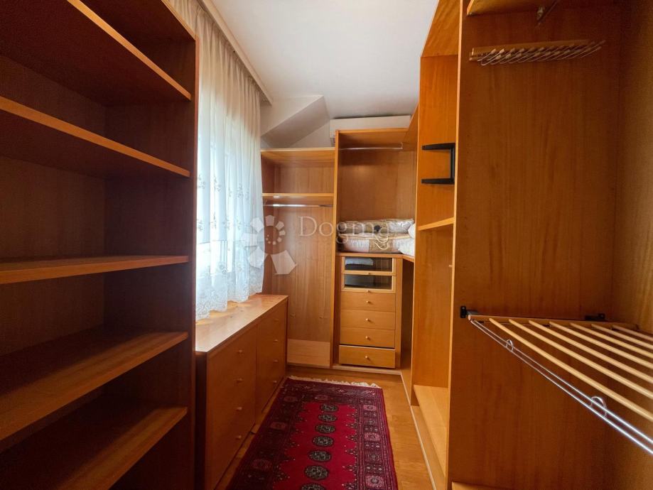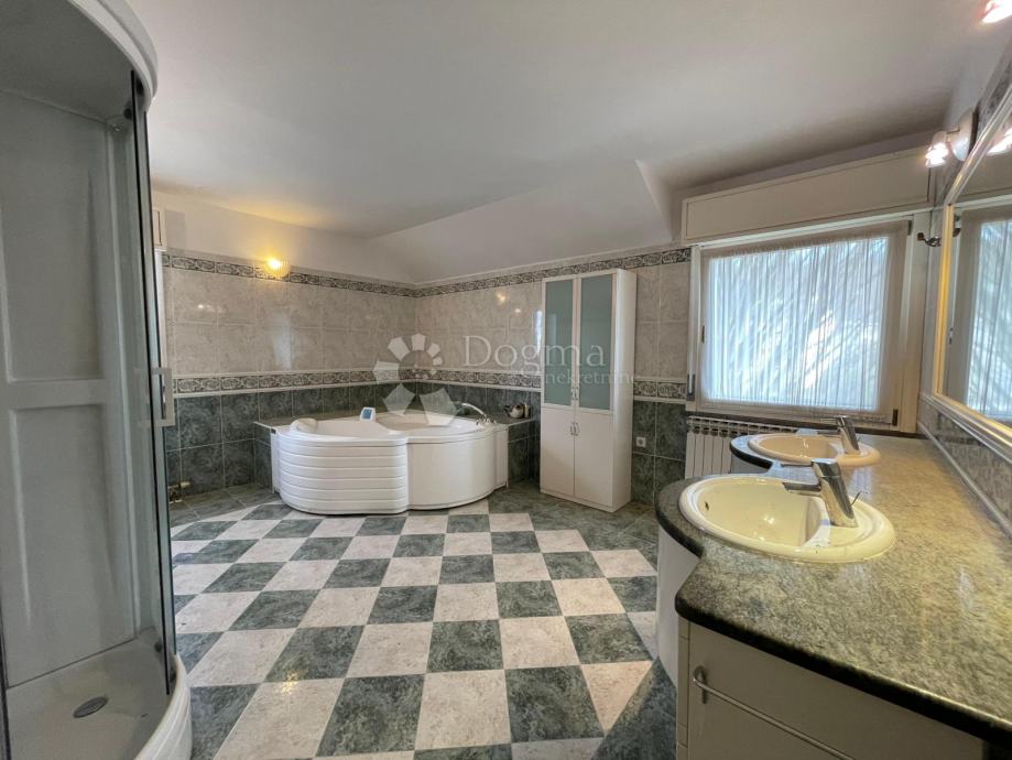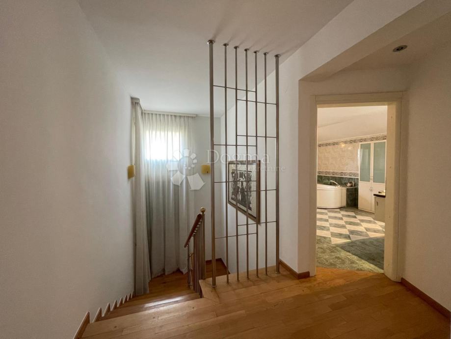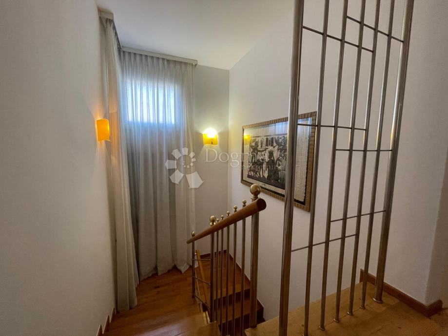 Na gornjoj etaži nalazi se glavna spavaća soba s vlastitom kupaonicom, garderobom i privatnom terasom. Uz nju, na katu su smještene tri dodatne spavaće sobe s garderobama i balkonima, te prostrana kupaonica s hidromasažnom kadom i tušem.