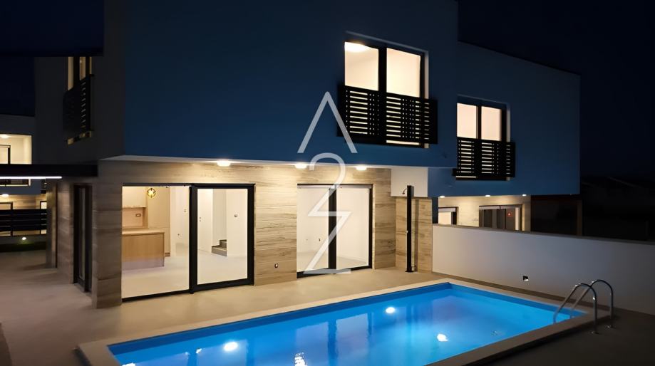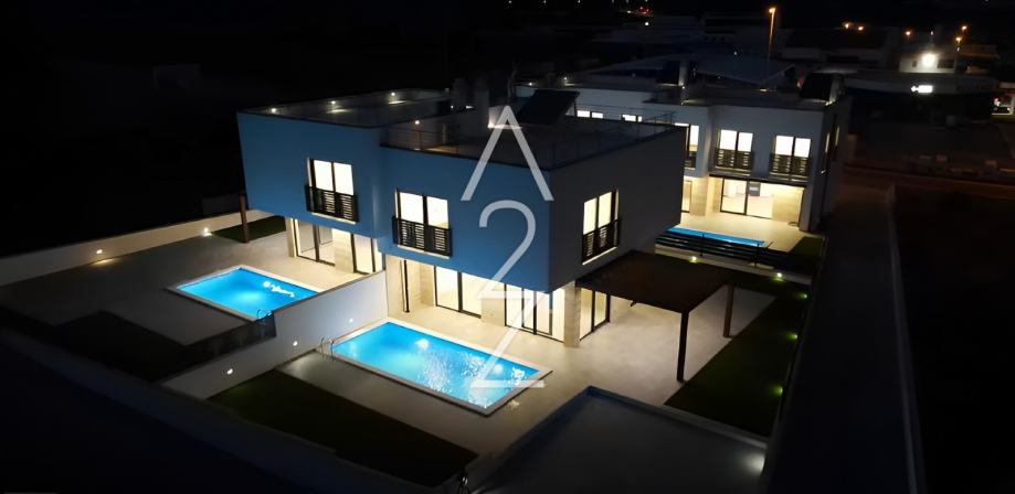 Prodaje se dvojna vila koja se nalazi pri ulazu u Vodice, cca. 1.3 kilometara od centra grada i plaža. Vila je izgrađena 2021. godine, ima svu potrebnu dokumentaciju i Uporabnu dozvolu i 1/1 vlasništvo. Spoj je onoga što je za jednu nekretninu od iznimne važnosti- kvalitetne gradnje, uredne dokumentacije i privatnosti sa svojim bazenom i okućnicom.