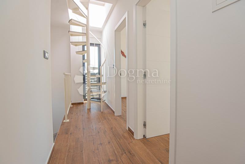 Vila ima ukupno korisnu površinu od 140,40 m², ima dvije etaže: prizemlje + 1. kat + prohodnu krovnu terasu. Prizemlje kuće sastoji se od kuhinje s blagovaonicom i dnevnim boravkom, predsoblja, spremišta, gostinjskog wc-a; unutarnje stubište vodi na 1.kat gdje su smještene 3 spavaće sobe i dvije kupaonice. Krovna terasa ima površinu od 52 m², sunčalište s pripremom za mogući jacuzzi. Okućnica je u potpunosti ograđena, ima 200 m² s prostranim parkirnim prostorom, prostor za vanjski roštilj, bazen površine 22 m². Vile su udaljene 1600 m od plaže i 1300 m od centra grada. Vila je građene su po visokom standardu kvalitete, opremljena s: