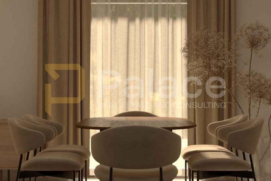 Unutarnji prostor:Prizemlje, veličine 105 m², dizajnirano je kako bi zadovoljilo potrebe svakodnevnog života. Sastoji se od prostranog dnevnog boravka povezanog s kuhinjom i blagovaonicom, jedne spavaće sobe s vlastitom kupaonicom, praonice, gostinjskog wc-a i kotlovnice. Iz svih glavnih prostorija izlazi se na vanjski prostor s bazenom, sunčalištem, natkrivenom i nenatkrivenom terasom te uređenim vrtom.