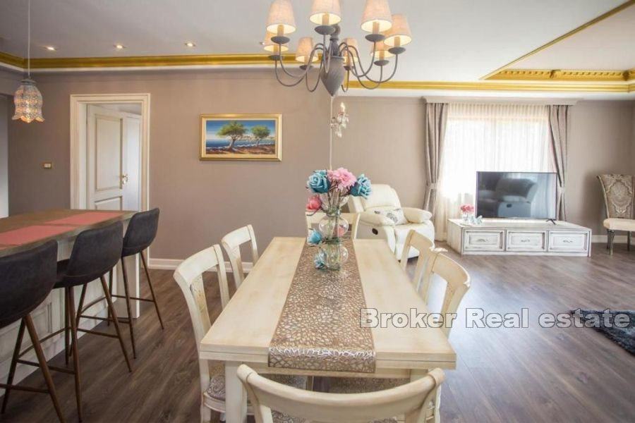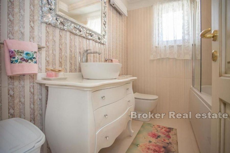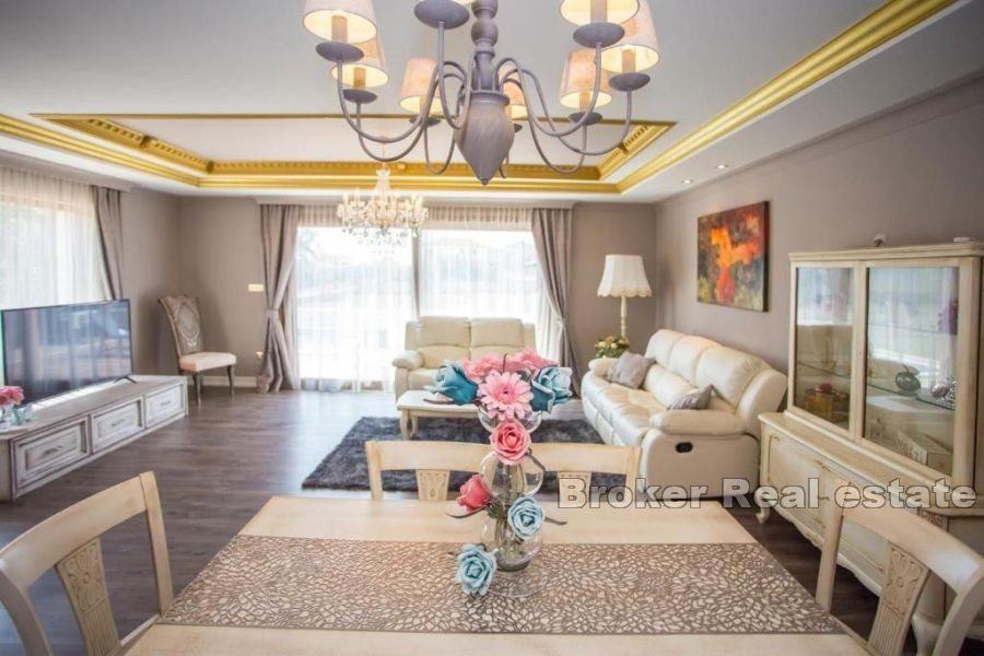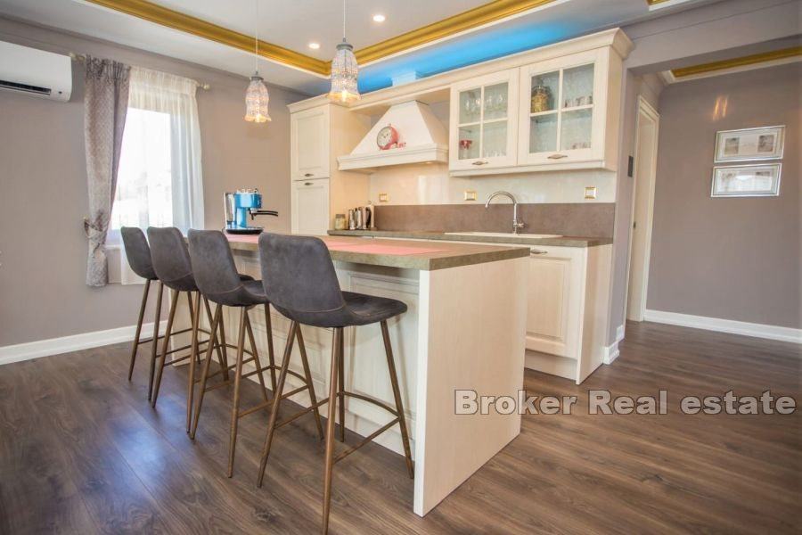 Prilikom izgradnje vile korišteni su isključivo vrhunski materijali, vila je opremljena odličnim rustikalnim namještajem te se prodaje potpuno opremljena. Grijanje i hlađenje je pomoću klima uređaja, međutim u dnevnom boravku je predviđeno mjesto za kamin te postoji dimnjak.