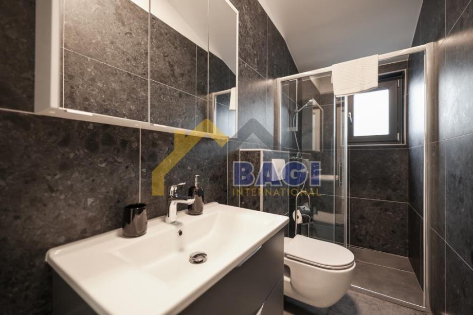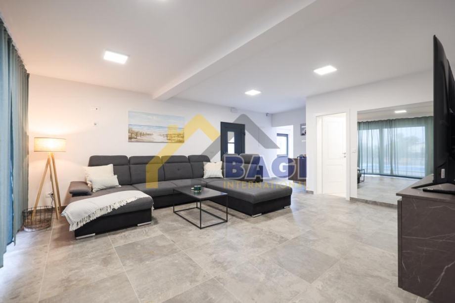 Prodaje se prekrasna vila s bazenom na Viru sa 5 spavaćih soba od kojih svaka ima vlastitu kupaonicu. Dodatan wc smješten u prizemlju, gdje se nalazi veliki prostrani dnevni boravak s blagovaonicom i otvorenom kuhinjom. Vila ima ogromne dvije terase s vrtom, bazenom i roštiljem, idealno mjesto za obiteljska druženja i komfort. Na imanju je predviđen parking za 5 auta. Udaljenost od mora svega 50m.