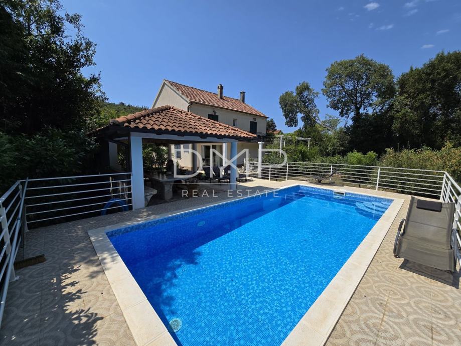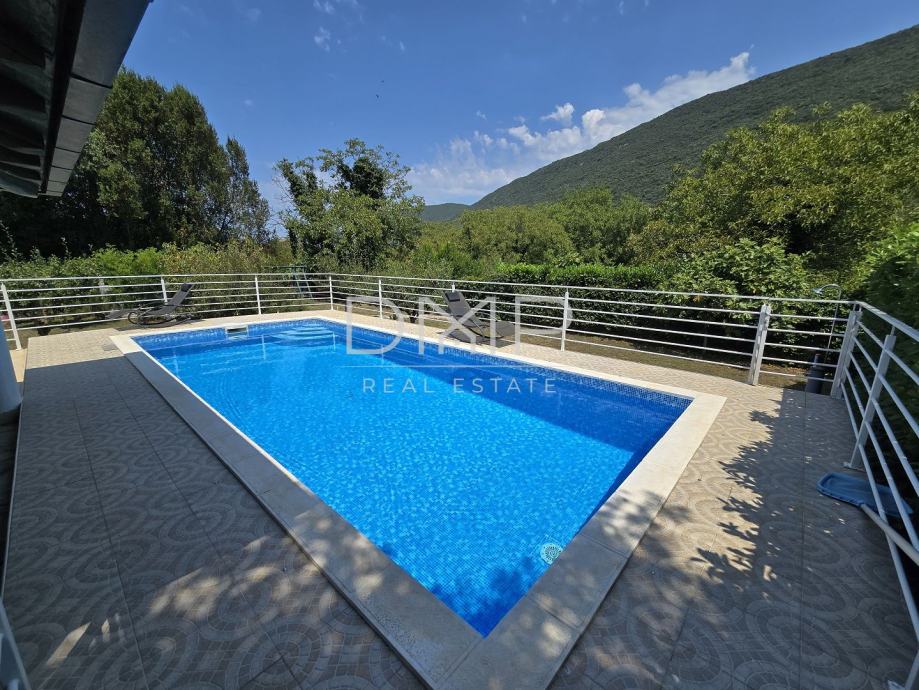 Okružena je zelenilom i prirodom. Kući pripadaju i terase, i parking oko kuće te bazen i voćnjak.