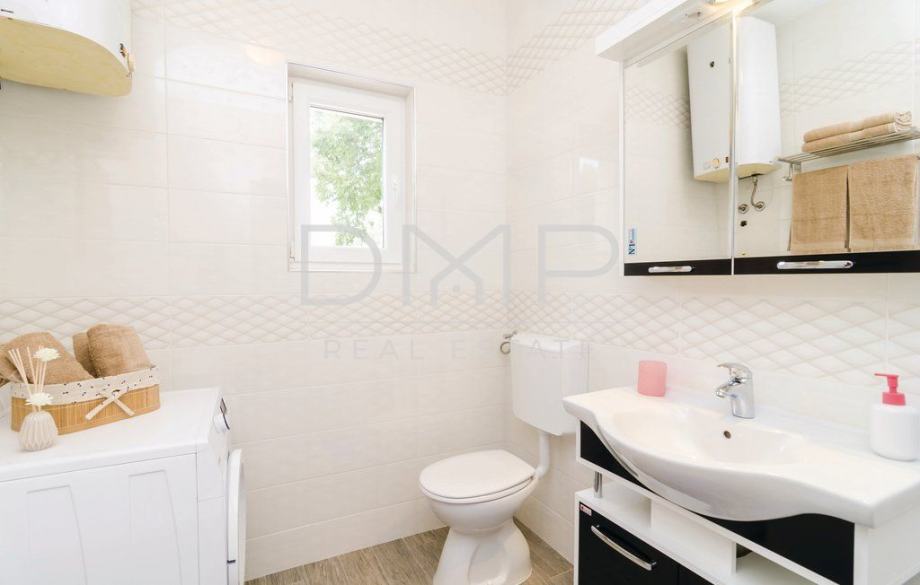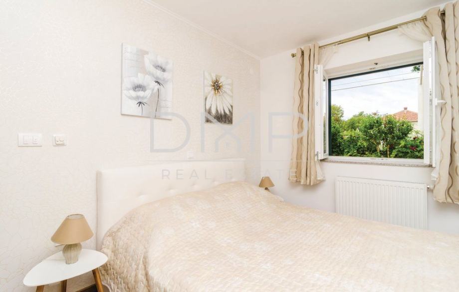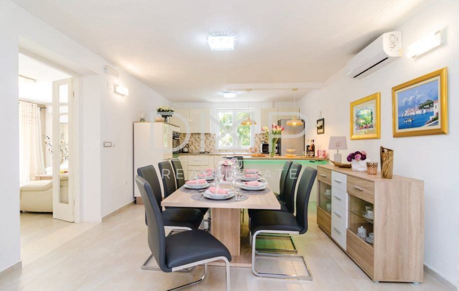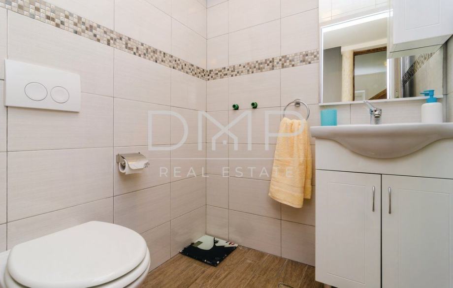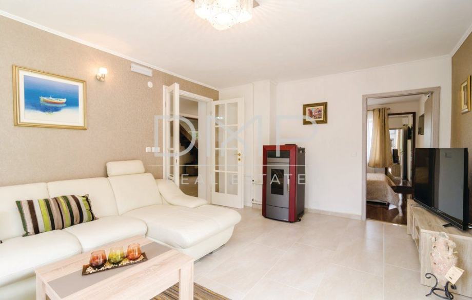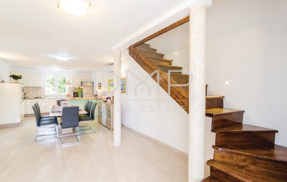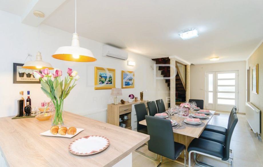 Kuća se sastoji od prizemlja sa kuhinjom, blagovaonicom, dnevnim boravkom, jednom spavaćom sobom i kupaonicom, te kata sa 3 spavaće sobe, 2 kupaonice i jednim WC-om.