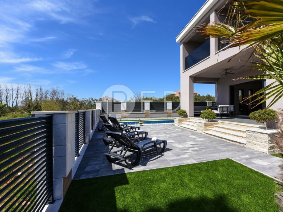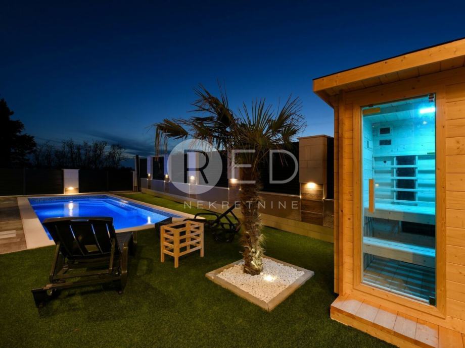 Na imanju vile nalazi se prekrasan, grijani bazen od 24 m2, sauna smještena pokraj bazena, oprema za stolni tenis i ostalo. Uživajte u opuštajućim trenucima na ležaljkama pokraj bazena u dvorištu koje je potpuno ograđeno zidom i ogradom od aluminijskih panela.