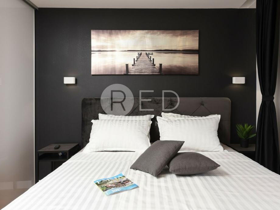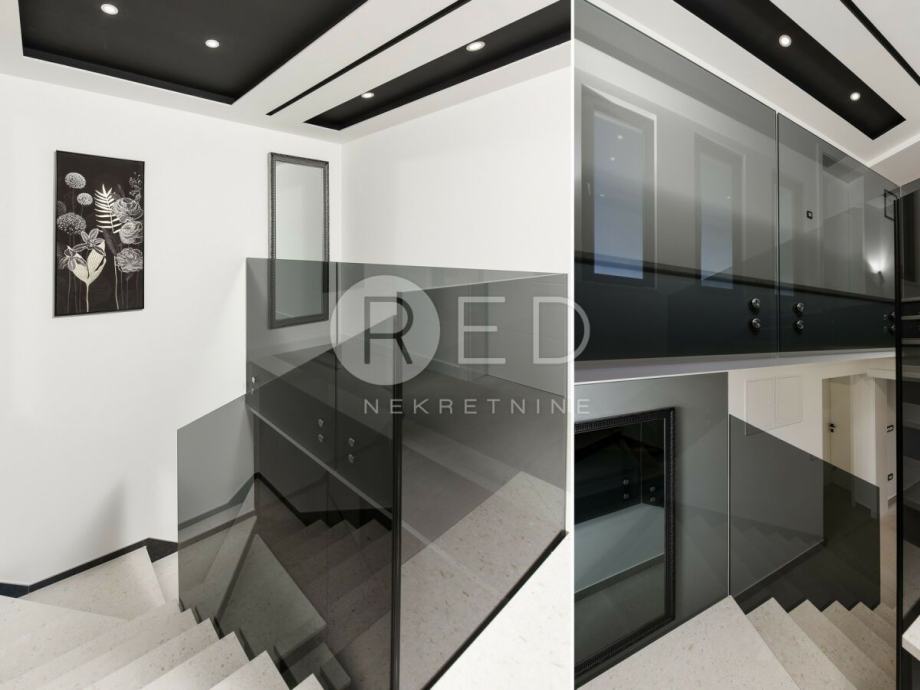 Interijer i eksterijer vile zrače elegancijom koja se ogleda u minimalističkim detaljima i prigušenim nijansama sive, crne i smaragdno zelene boje. Najzanimljiviji detalj vile svakako je rasvjeta koja krasi strop prizemlja, što će boravak u vili pretvoriti u posebno iskustvo. Također, svaka soba vile nudi prekrasan pogled na kristalno čisto more.