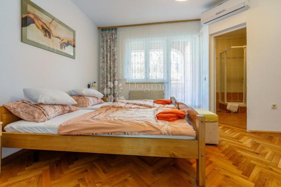 Drugi kat (visoko potkrovlje): Ovaj prostor uključuje walk-in garderober, spavaću sobu s vlastitom kupaonicom te dnevno-kuhinjski blagovaonski dio, koji nudi udobnost i privatnost.