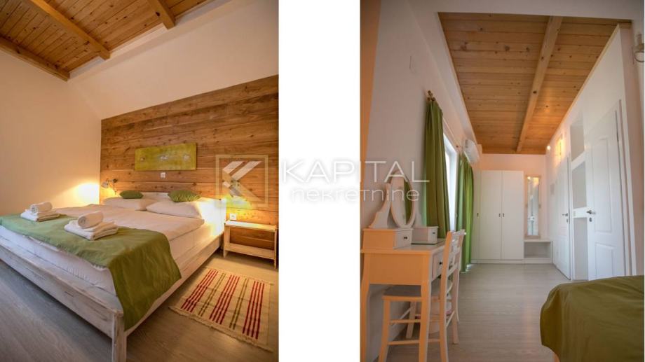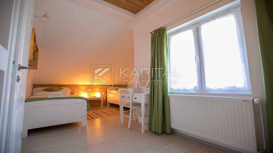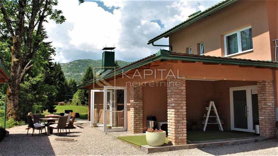 Prodajemo villu sa 6 studio apartmana i prostorijama za druženje (teretana, dnevni boravak/sala za ručavanje, kuhinja, recepcija..). Pripada joj i manji objekt također preuređen u zaseban apartman. Ispred objekta je veliki parkirni prostor. S velike terase ispred dnevnog boravka pruža se pogled na livade i šume. Teren u tom dijelu (4000 m2) se također prodaje u sklopu ove cijene tako pa sveukupno parcela iznosi blizu 6000 m2. Villa je odlična investicija za najam turistima i lovcima jer je u neposrednoj blizini skijaški centar Bjelolasica, a obližnje šume obiluju divljači (medvjedi, srne..). Prometna povezanost je odlična, udaljenost do mora je manja od sat vremena (cca 50 km do Novog Vinodolskog), a do Ogulina manje od 20 minuta. Za sve dodatne informacije nazovite 099/2196-353 ili 091/540 8520.