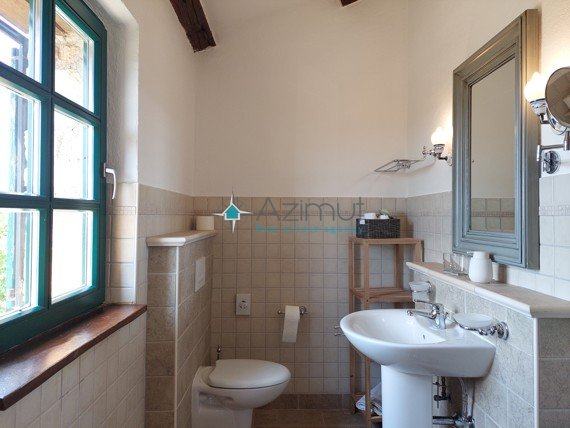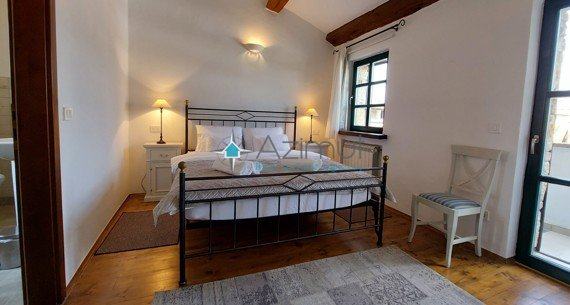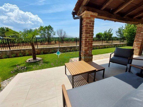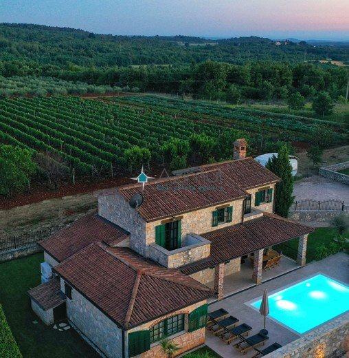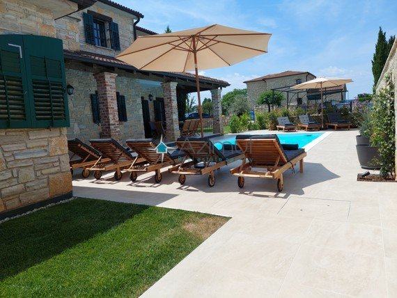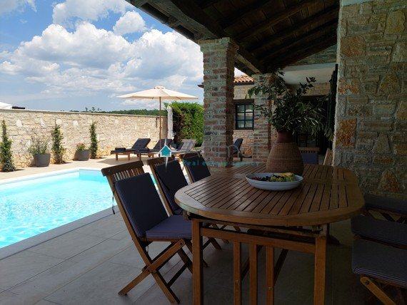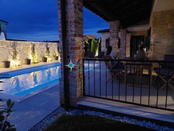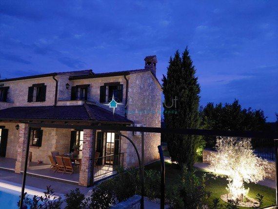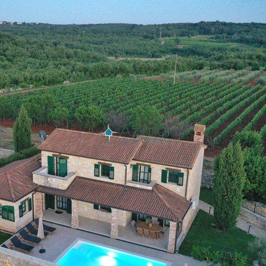 Šarmantna vila od tipičnog bijelog istarskog kamena s privatnim bazenom nalazi se u naselju s vilama okruženom prirodom, vinogradima, maslinicima, a opet samo 10 km udaljena od mora. U vrtu je novonapravljen bazen velicine 7×4m, voda se greje preko termalne pumpe a dezinfikuje putem solne elektrolise (bez hemikalia- Hlora).