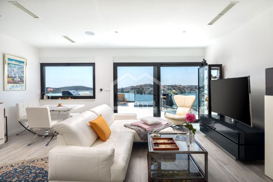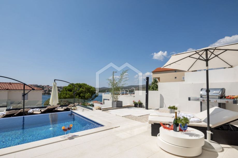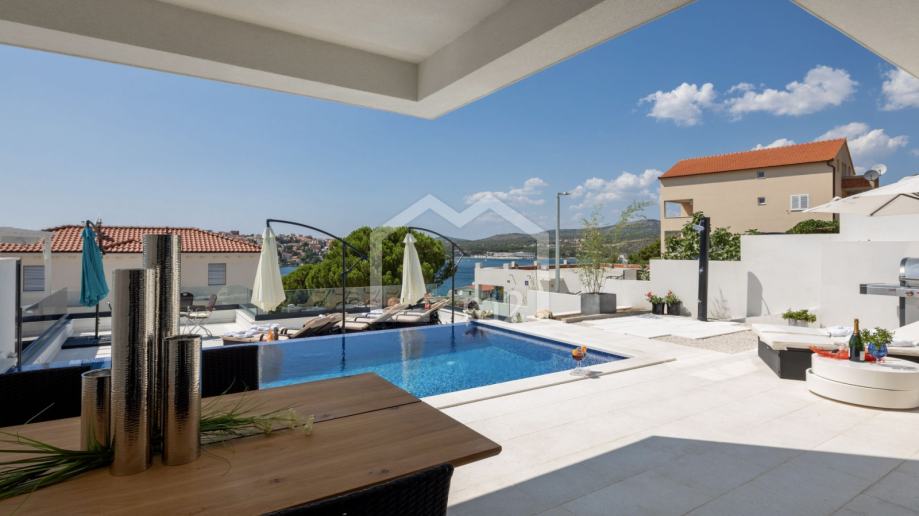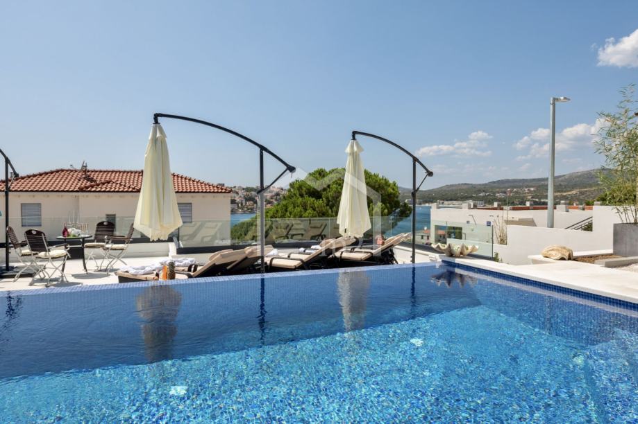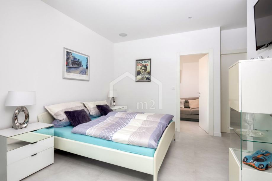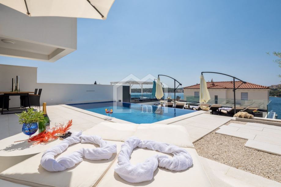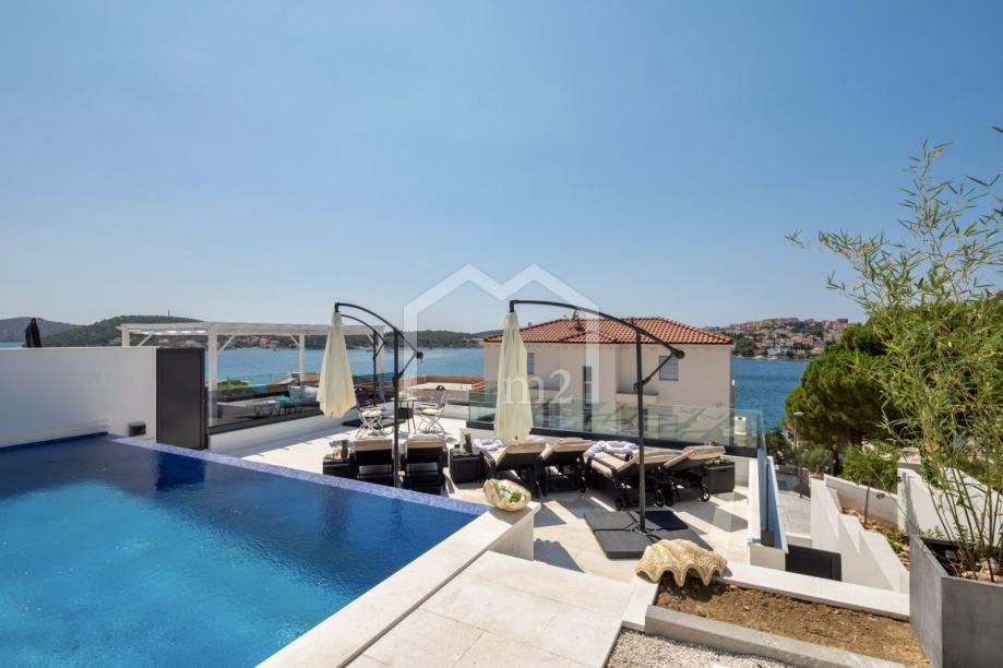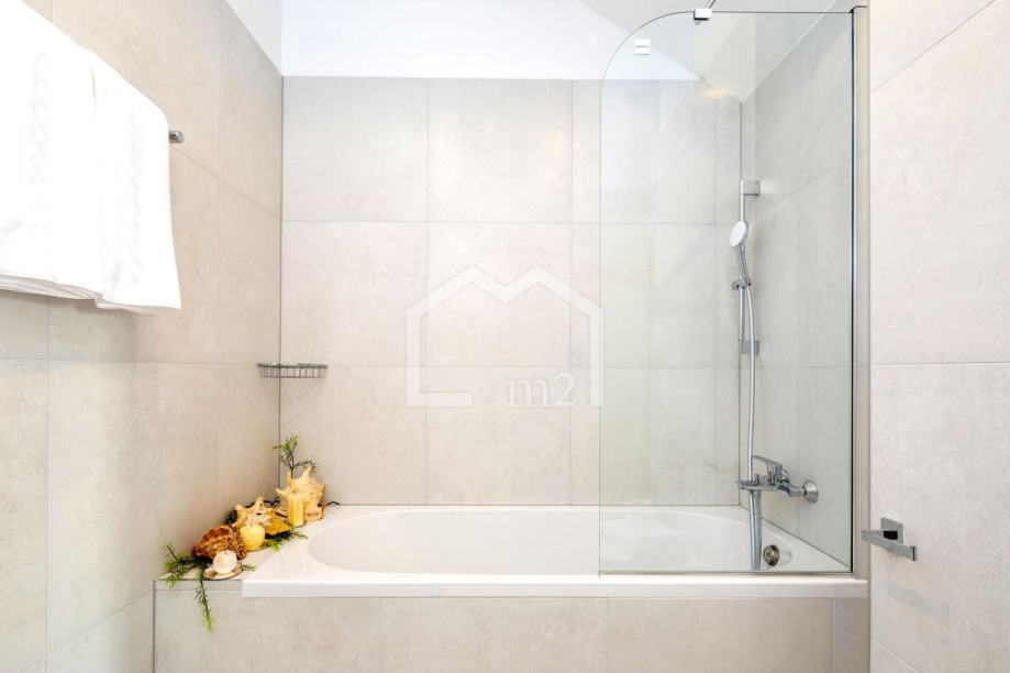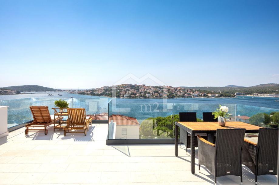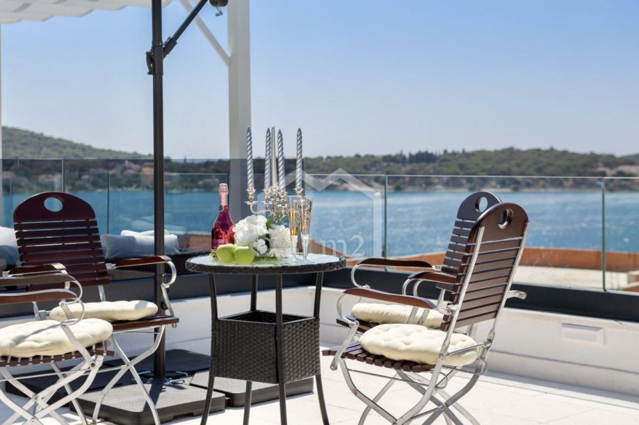 U prizemlju su smještene tri spavaće sobe sa kupaonama, dvije manje terase. Sa svake terase se pruža odličan pogled na more i Rogoznicu.
