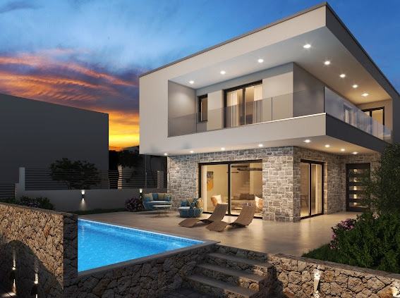 Prodaje se moderna vila u Brodarici, nedaleko od Šibenika, s prekrasnim bazenom. Novogradnja.