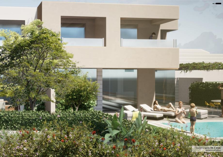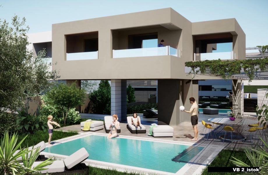 U ponudi nudimo novu dvojnu villu u novogradnji s bazenom, prostranim vrtom i prekrasnim pogledom na more.