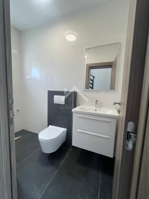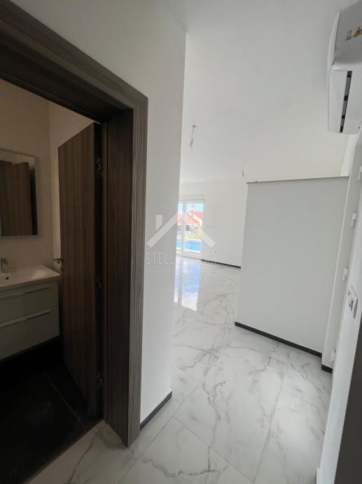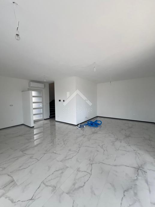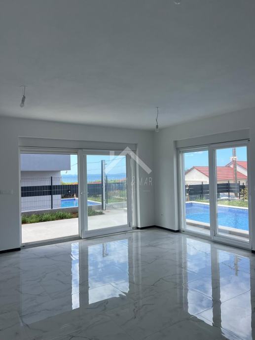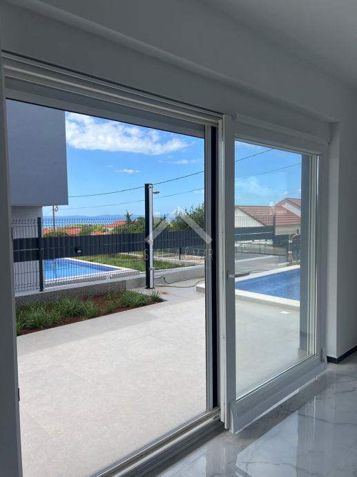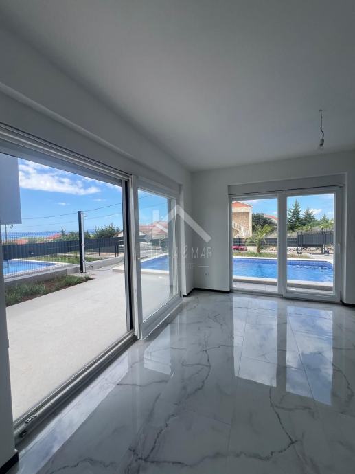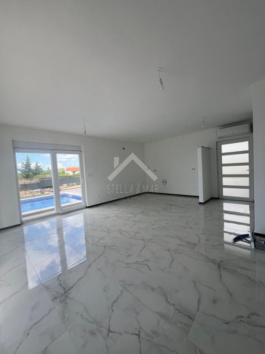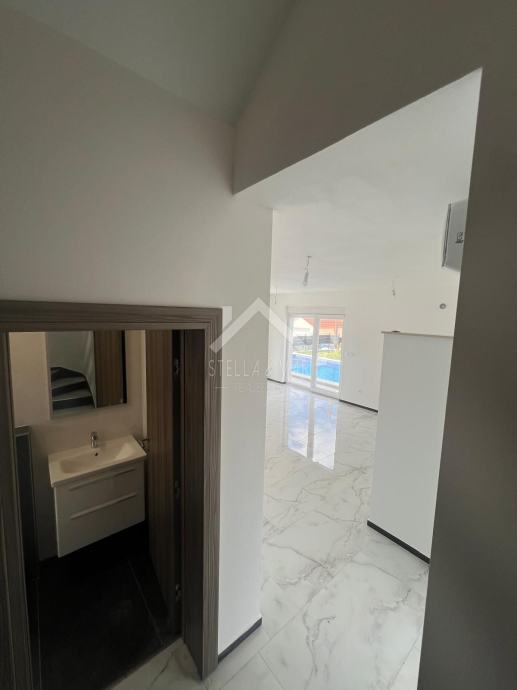 U prizemlju se nalazi prostrani dnevni boravak sa kuhinjom i blagovaonom, WC i ostava. Iz dnevnog boravka se izlazi u dvorište gdje se nalazi bazen površine 25m2.