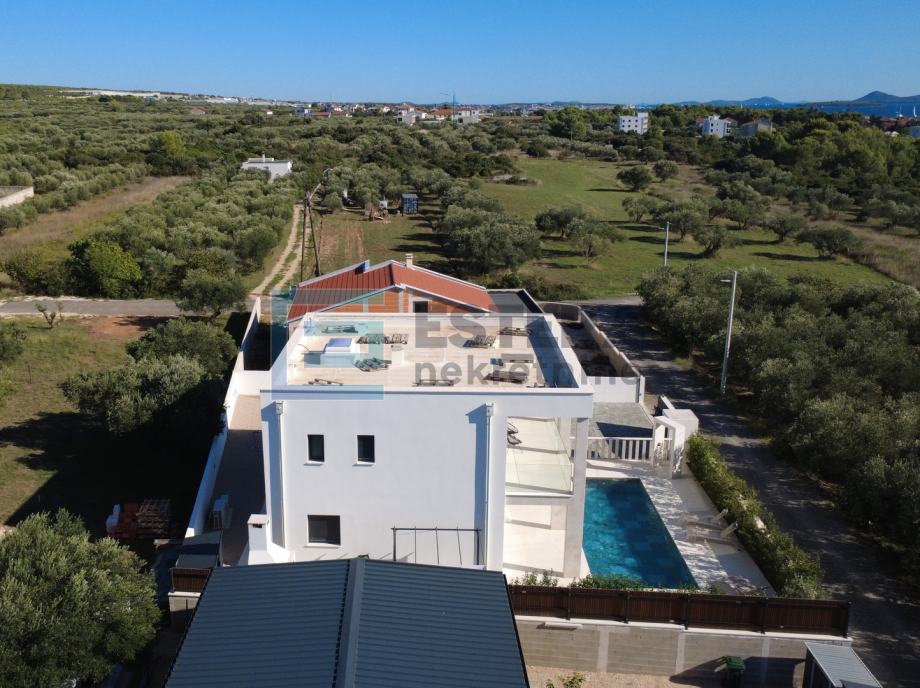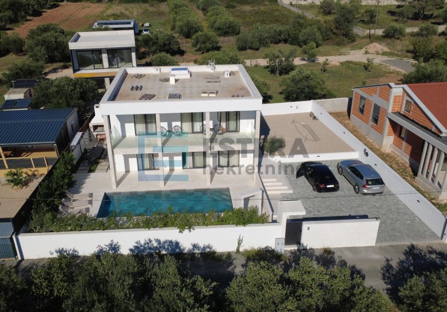 Luksuzna samostojeća villa na prodaju u malom turističkom mjestu Turanj, nedaleko Biograda! Izgrađena 2024. godine, smjestila se na zemljištu od 544 m², dok sama građevina tlocrtno zauzima 117,70 m².