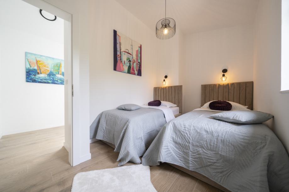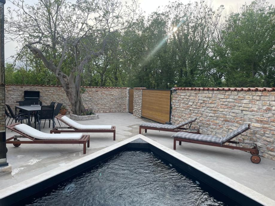 EKSKLUZIVNA PRODAJA- Moderno uređena i namještena u potpunosti kamena vila nalazi se u mjestu Privlaka pored Zadra. Nalazi se na mirnoj lokaciji okružena prirodom, što joj daje privatnost i uživanje u ljetnim večerima bez buke. U samoj gradnji i opremanju su korišteni isključivo najkvalitetniji materijali od renomiranih proizvođača, najkvalitetnija stolarija (sibirski bor), keramika prve klase, dizajnerski namještaj). Vila se sastoji od prizemlja u kojem se nalazi kuhinja, dnevni boravak i kupaona, dok se na prvom katu nalaze 2 spavaće sobe sa kuaponicama. Objekt posjeduje podno grijanje kuće, te klima uređaj. U dvorištu se nalazi grijani bazen i vanjska terasa. Udaljenost od mora i plaže je 500 m.