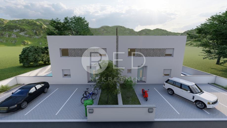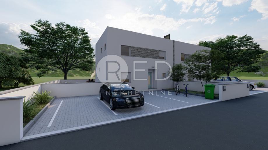 Na prvom katu su smještene dvije spavaće sobe s vlastitom kupaonicom, te ostava veličine 8 m2 s potrebnim priključcima za perilicu i sušilicu rublja