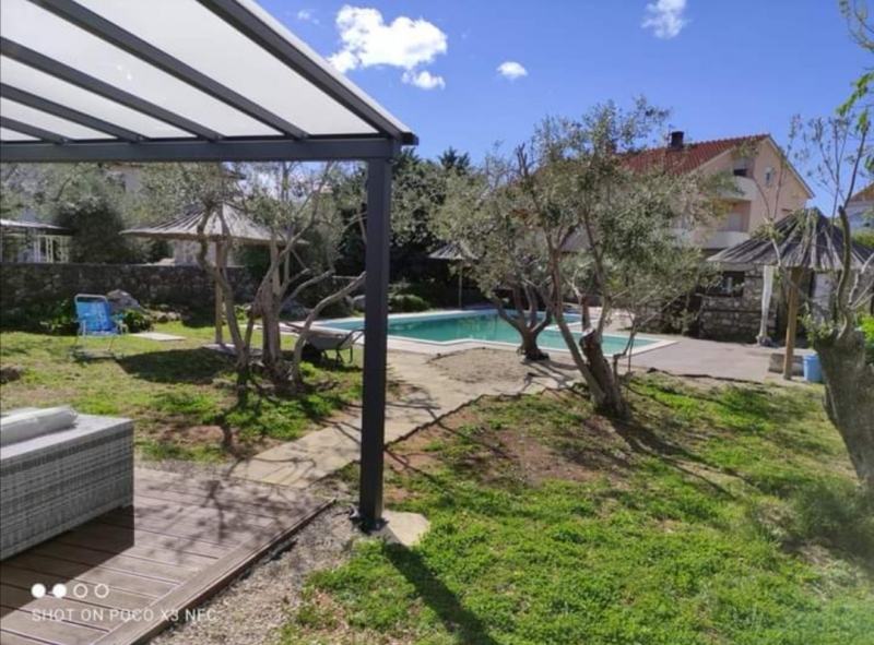Samostojeća villa sa lijepom zelenom okućnicom od 1020m2 na kojoj se nalazi bazen 10*5, na odličnoj lokaciji u blizini centra Krka, samo 250m udaljenosti od strogog centra!!